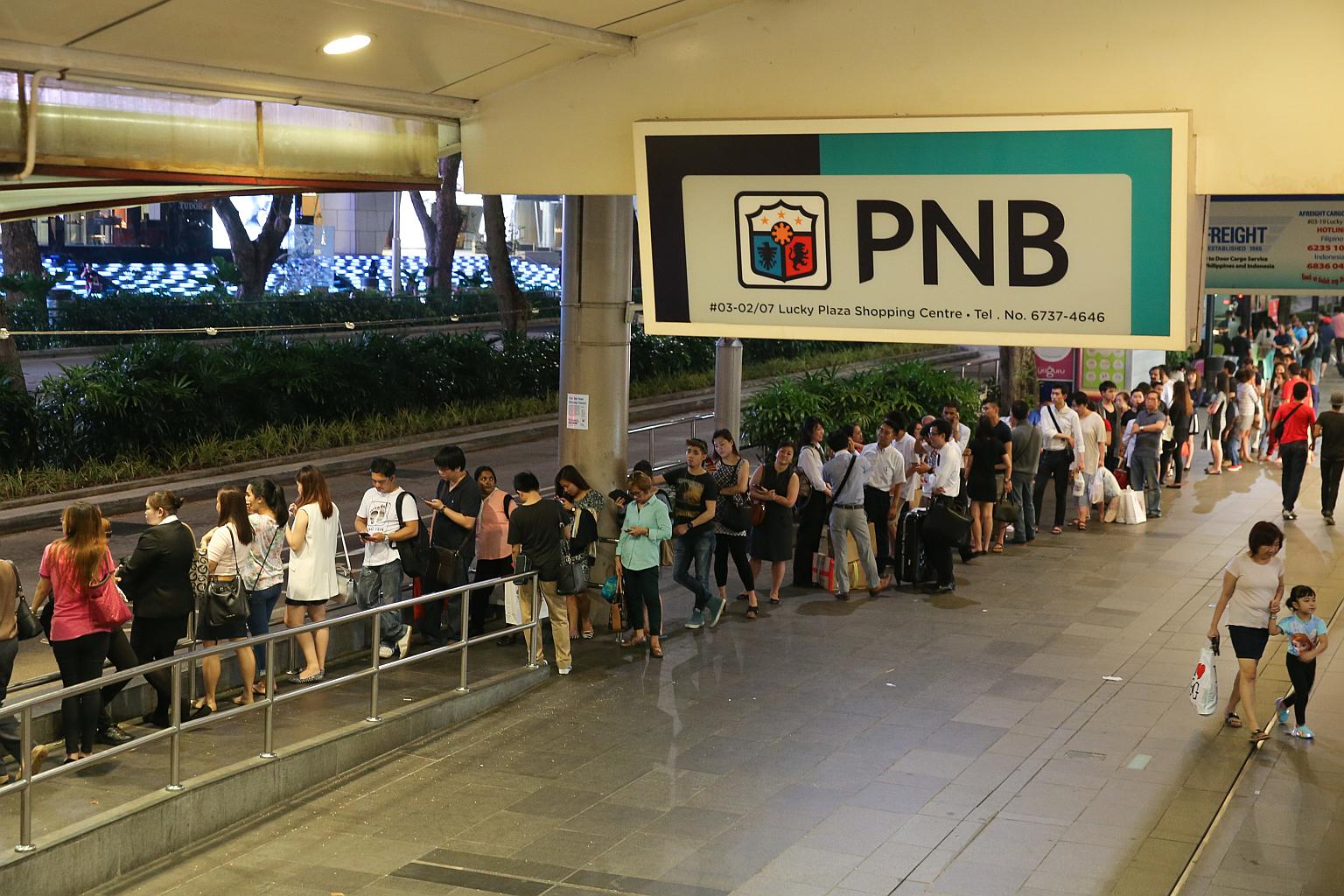 The taxi queue outside Lucky Plaza at 10.50pm after the MRT breakdown on July 7, 2015.