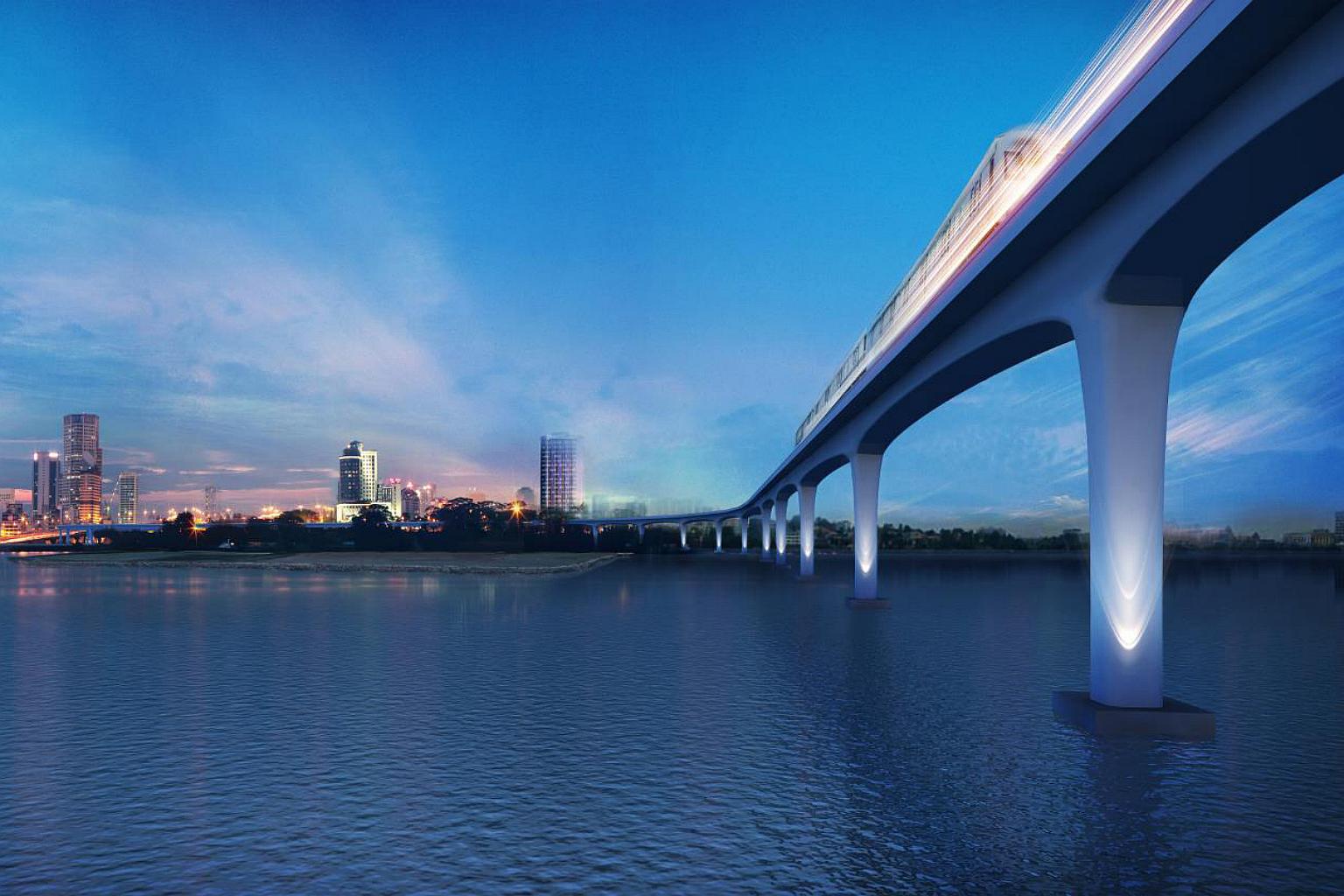 An artist's impression of the Rapid Transit System Link viaduct that will span the Johor Strait.