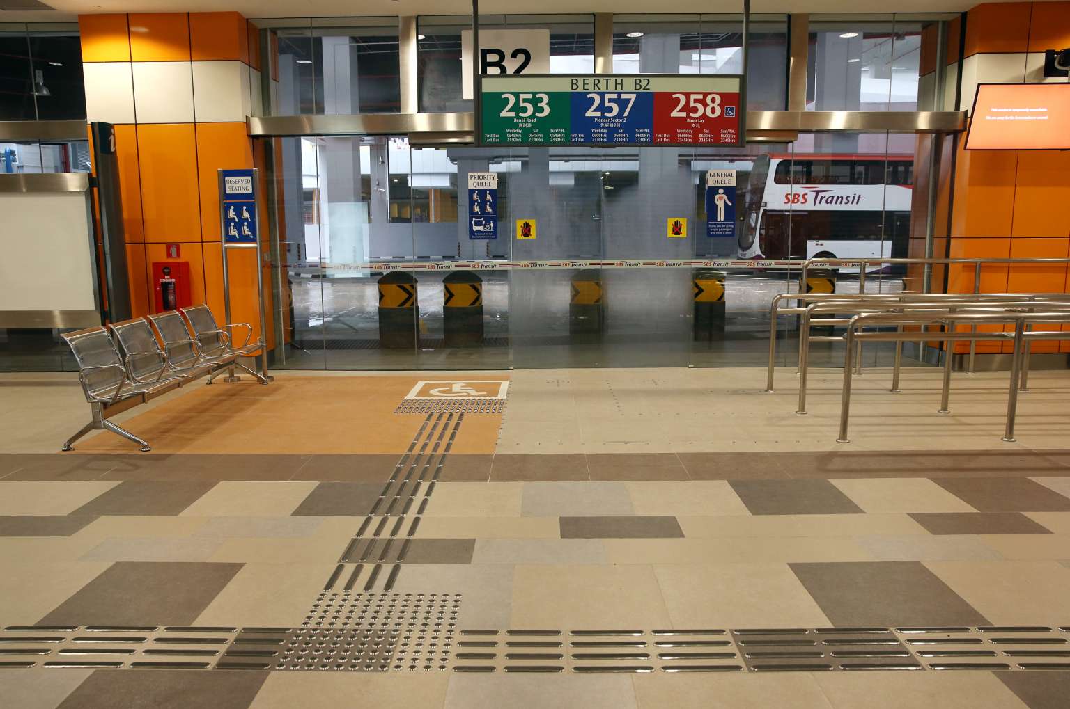 Priority zones near boarding berths at the Joo Koon integrated transport hub.