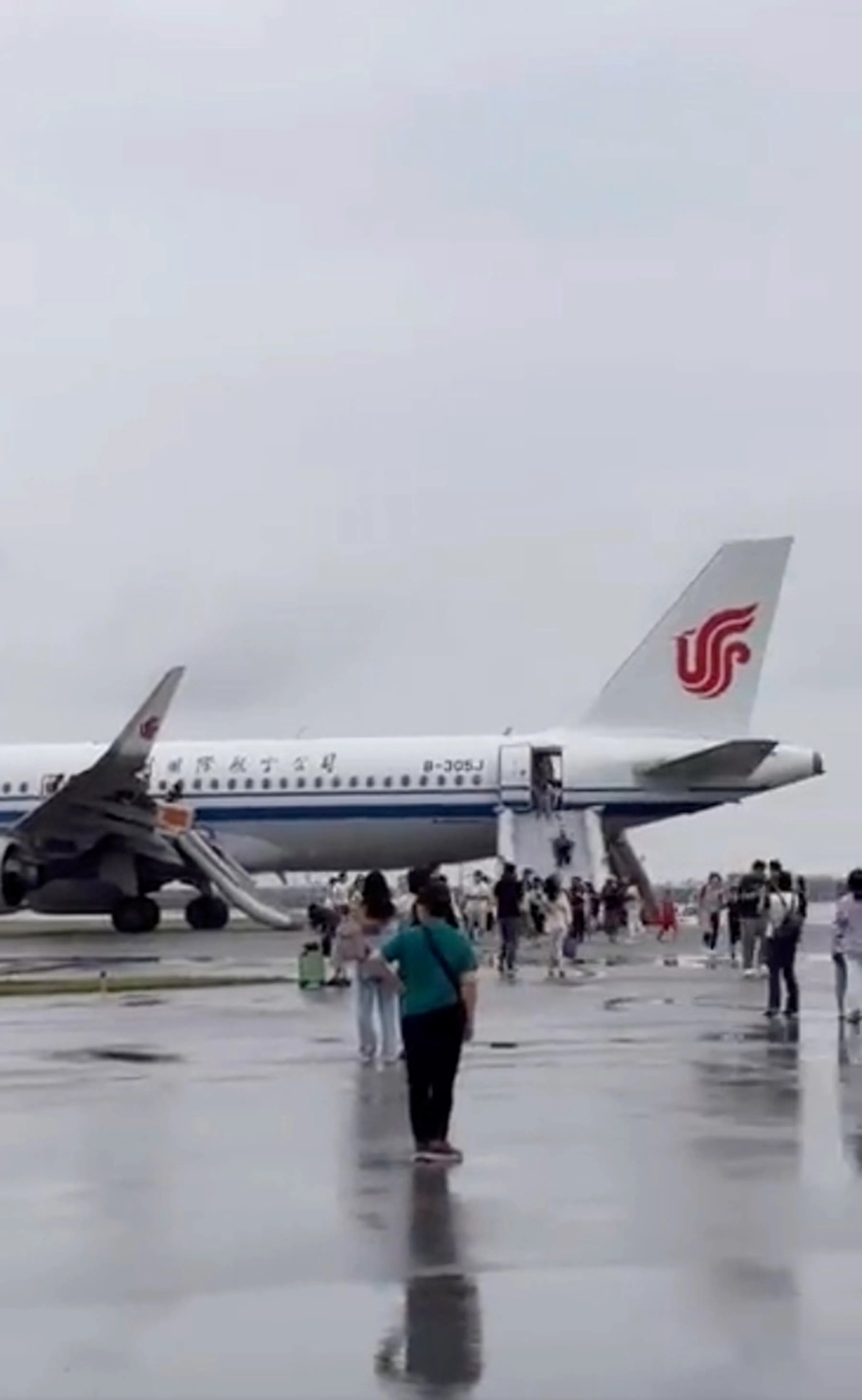 SINGAPORE – As passengers aboard Air China Flight CA403 evacuated the plane after it made an emergency landing at Changi Airport