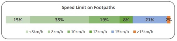 Based on the survey, 77 per cent of respondents supported lowering the existing speed limit from 15kmh on footpaths, with 35 per cent feeling it should be 8kmh and 19 per cent thinking it should be 10kmh.