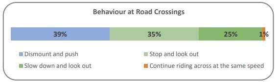 As for the behaviour of cyclists and PMD users at road crossings, 39 per cent felt riders should dismount and push, while 60 per cent felt riders should either stop or slow down before looking out.