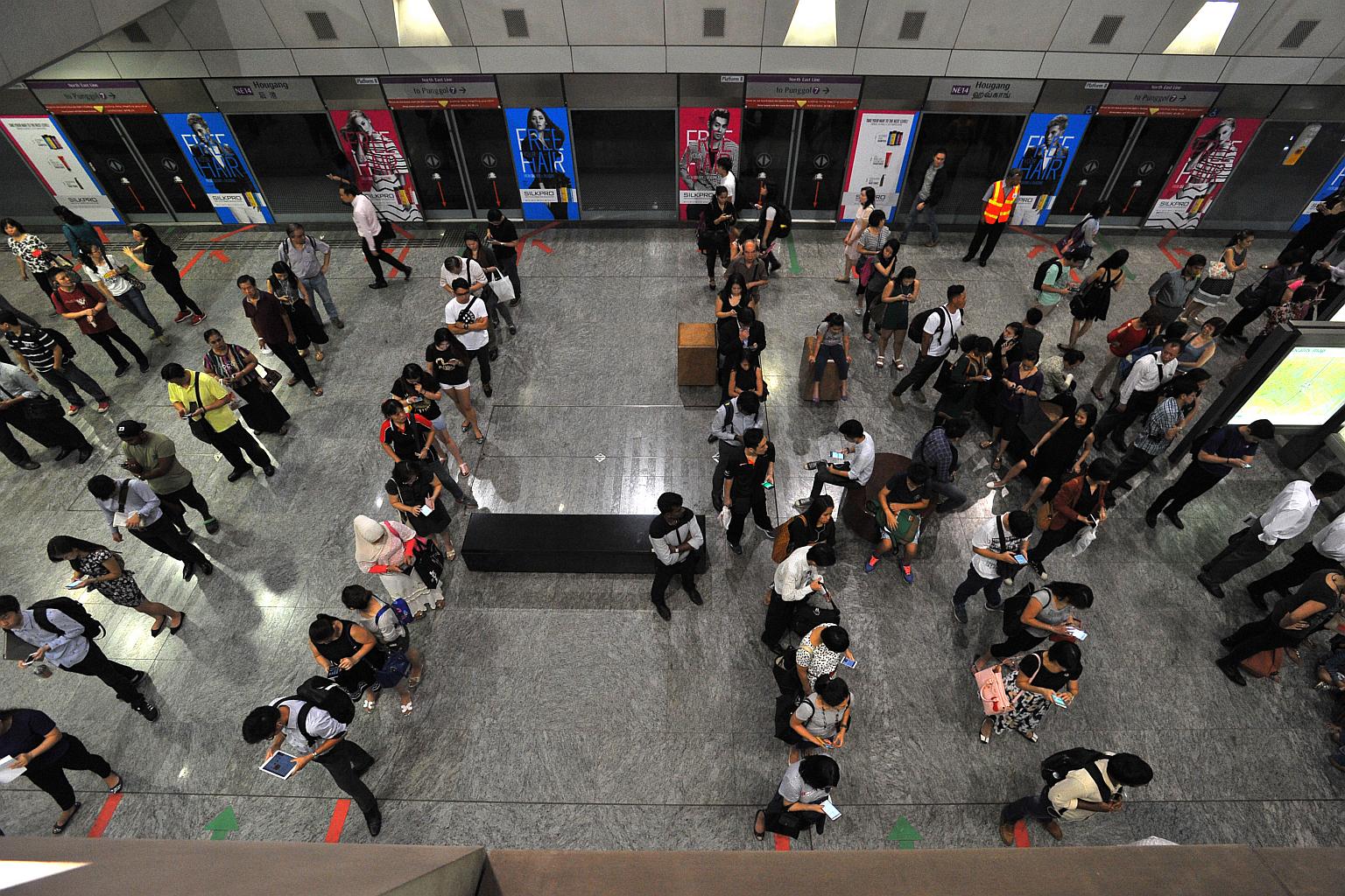 The crowd inside Hougang MRT station on Sept 8 during a rail breakdown.
