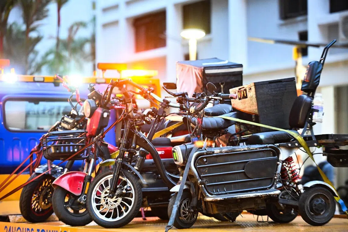 The offences included the display of non-compliant power-assisted bicycles (PABs), or e-bikes, for sale at the shop. On the footpath, officers confiscated AMDs that were non-compliant or unregistered, and those that had no or missing number plates.