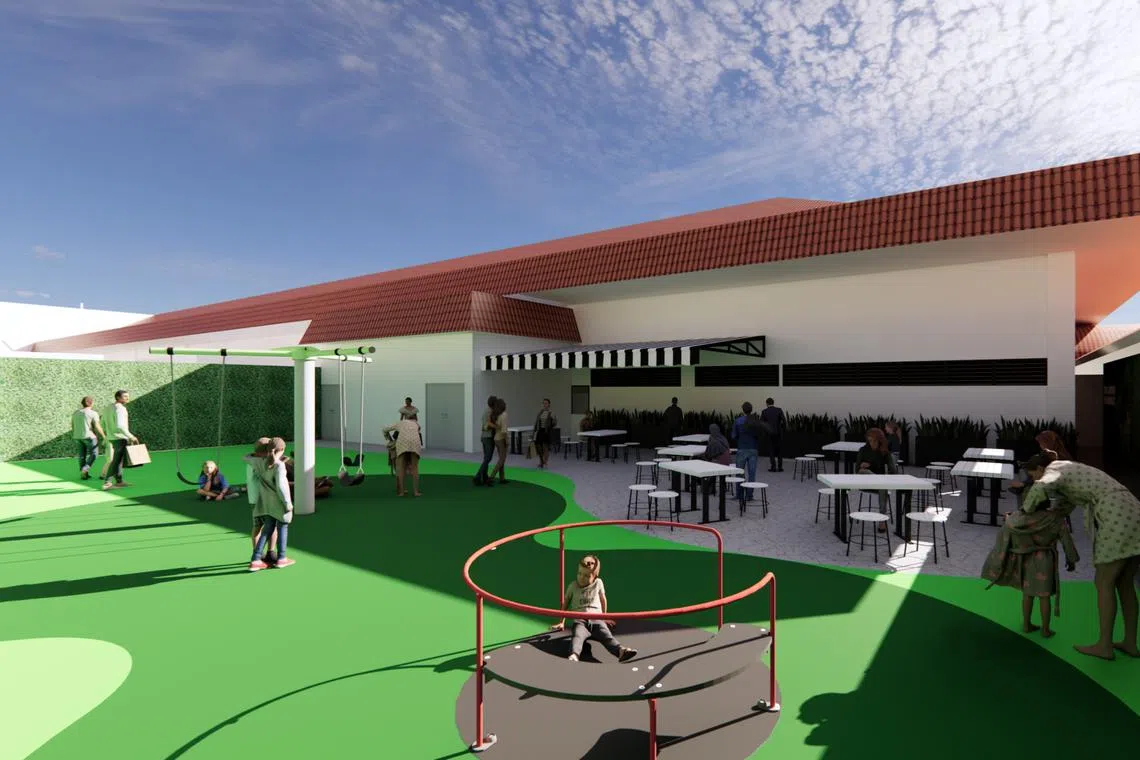 An artist’s impression of the outdoor play area for families with young children to gather.