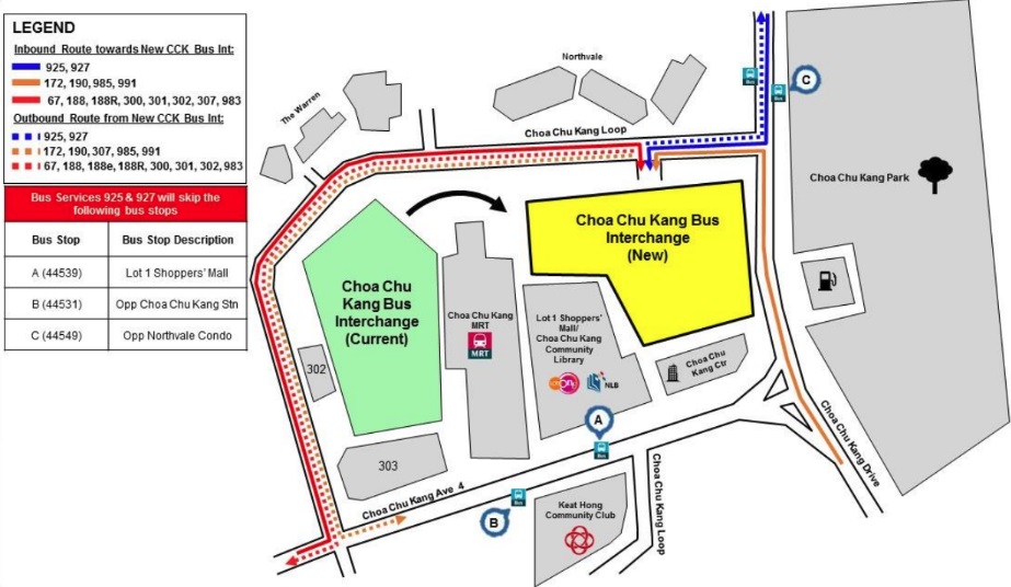 Services 925 and 927 will no longer ply Choa Chu Kang Avenue 4 due to adjustments made to enter and exit the new interchange.