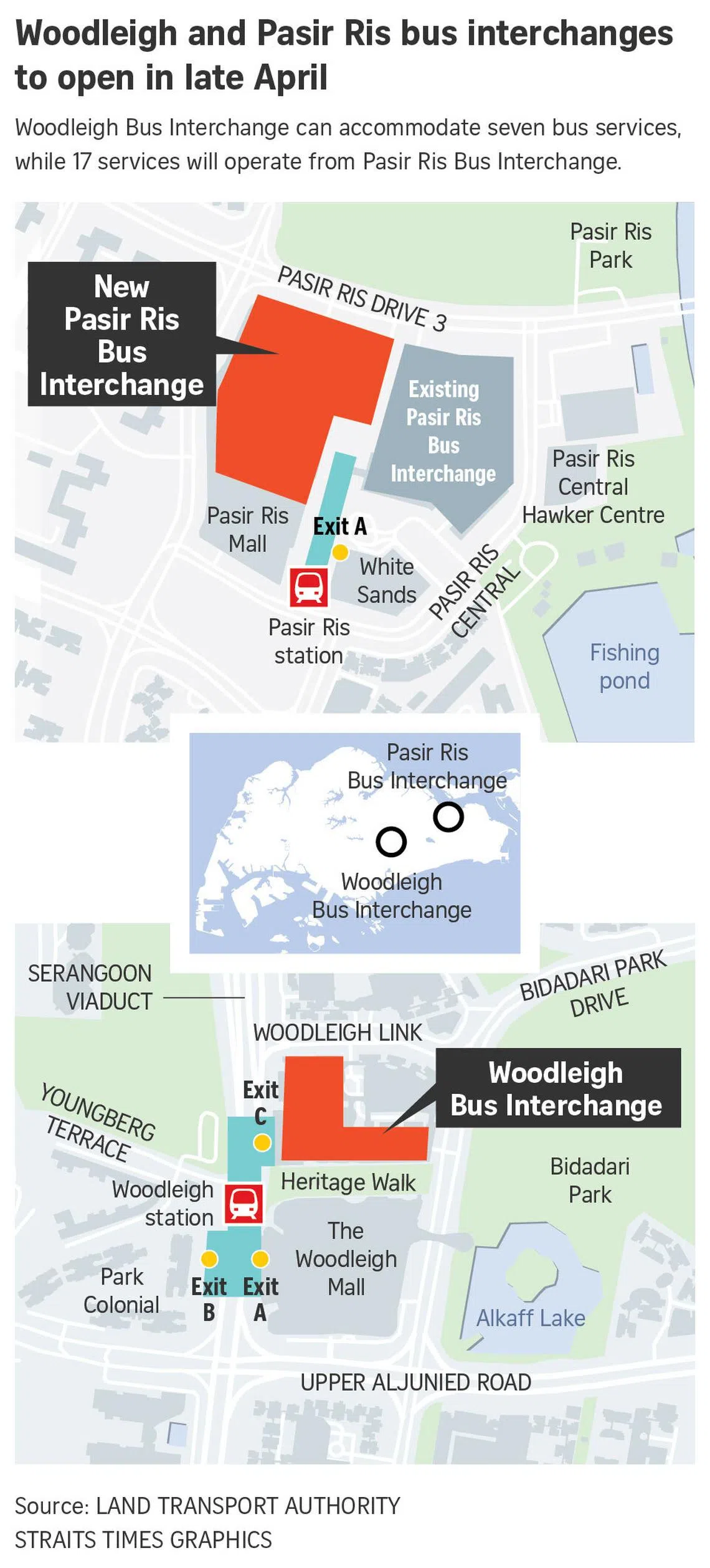 New Pasir Ris Bus Interchange, delayed Woodleigh Bus Interchange to open in late April