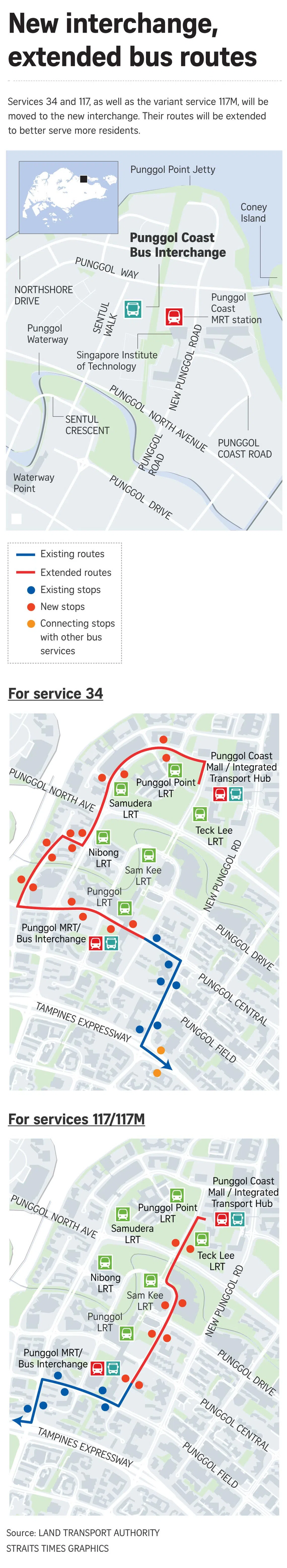 For a start, two bus services – 34 and 117 – as well as the variant service 117M will be shifted from the Punggol Bus Interchange in Punggol Central to the new interchange in Sentul Walk, which has capacity for up to 10 bus services.