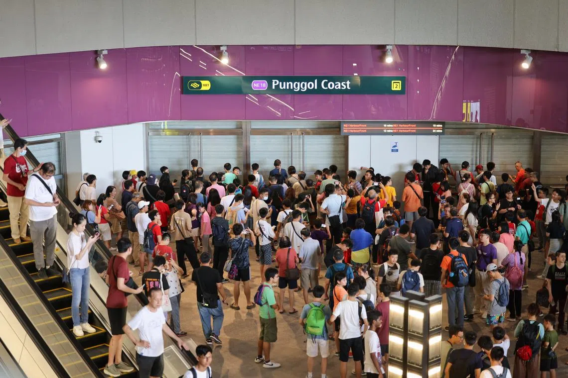 About 50 people were waiting outside Punggol Coast station at 2.30pm. The crowd had doubled by 2.50pm.