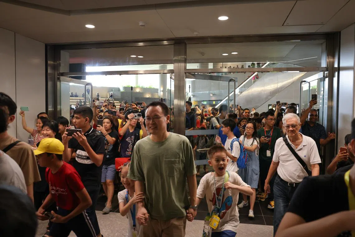 People entering Punggol Coast MRT station for the first time on Dec 10.