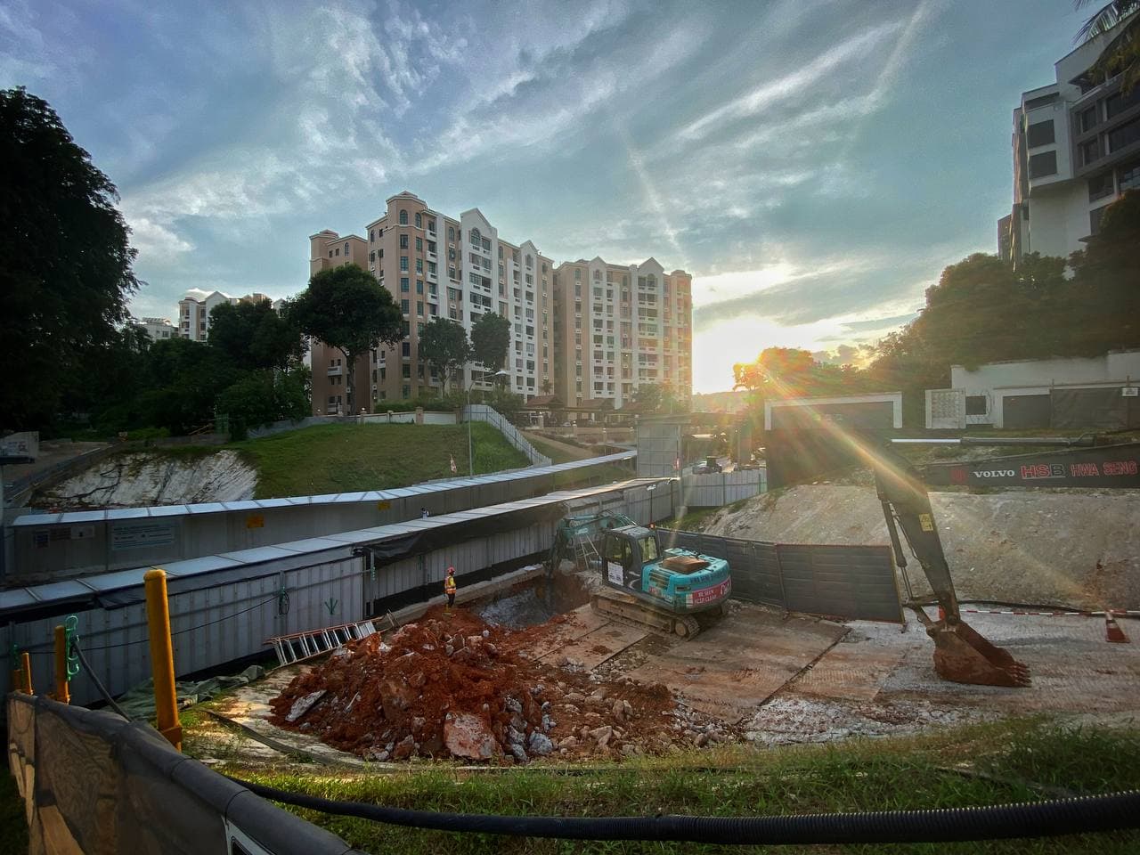 The underpass is part of a new road that links Hillview Rise to Dairy Farm Road, a major two-lane dual carriageway that will have a third lane added to each side. When The Straits Times visited on Monday (Oct 18), earth-retaining walls were being installed along a stretch of Dairy Farm Road flanking a part of the Wallace Trail - a popular walking trail.