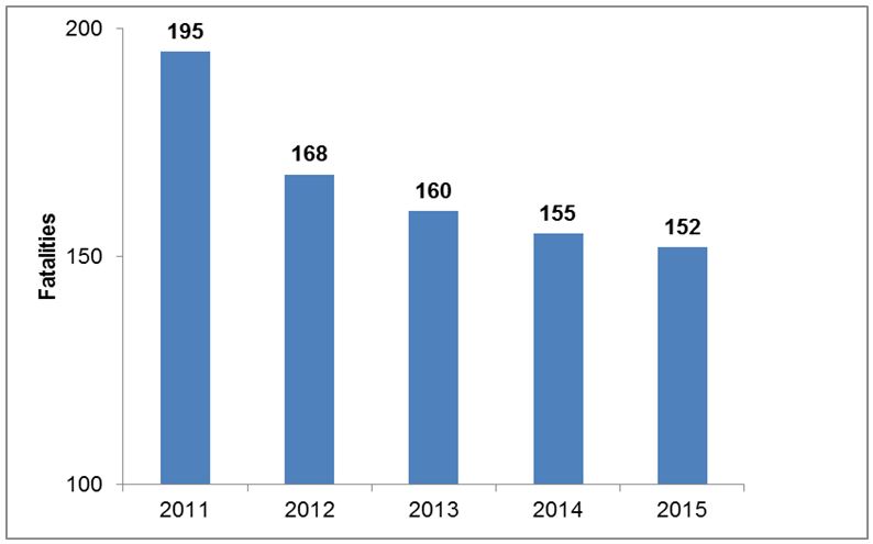 A total of 152 people died on the roads last year, down from 155 in 2014 - a continuation of a downward trend that has persisted for the last five years.