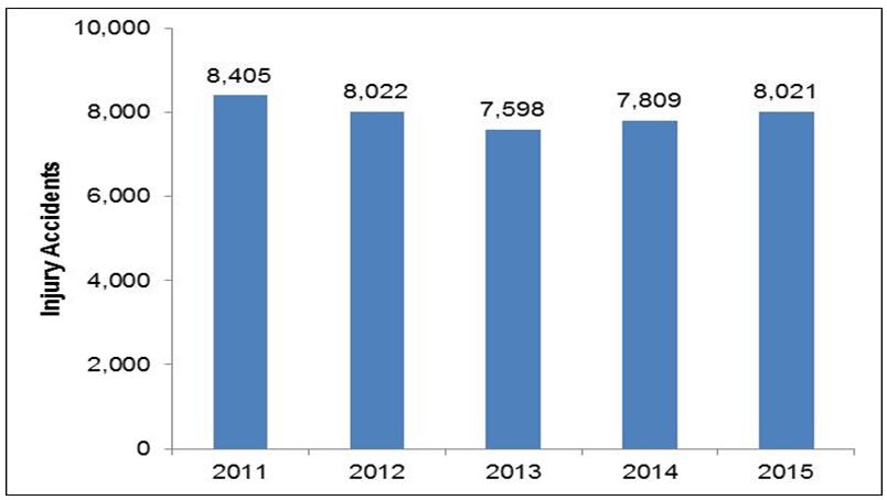 Last year, there were 8,021 injury accidents, up 2.7 per cent from 7,809 cases in 2014.