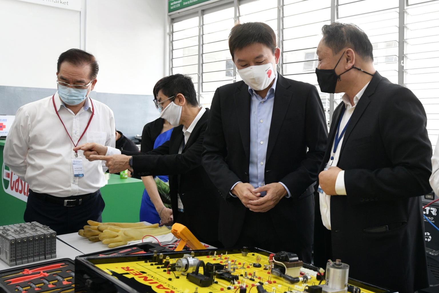 (From right) Singapore Motor Workshop Association vice-president Henry Liang and Senior Minister of State for Transport Chee Hong Tat at the SMWA Training Academy on Dec 7, 2020.