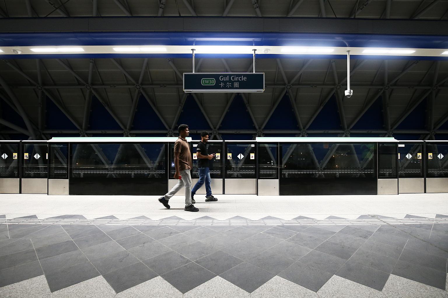 The train service from Boon Lay to Gul Circle, in the direction of Tuas Link, typically begins at 5.21am on weekdays, and at 5.26am from Gul Circle to Boon Lay, in the direction of Pasir Ris.