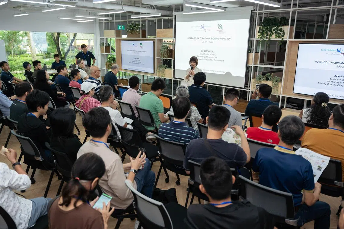 She was speaking at a public engagement session jointly organised by the Land Transport Authority (LTA) and the National Parks Board (NParks) to gather ideas and feedback on how best to redesign the freed-up road space.