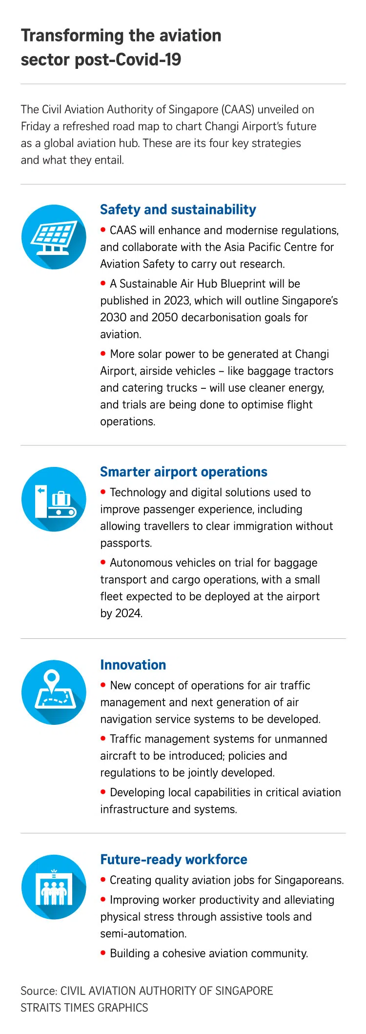 In response to queries from The Straits Times, CAAS said the sector was on track to meet these goals before it was disrupted by the pandemic.