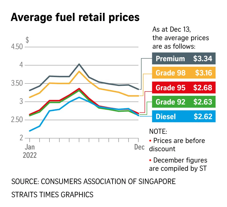 The drop in pump prices is not isolated to Singapore. The New York Times reported last week that petrol prices in the United States were at their lowest in just over a year.