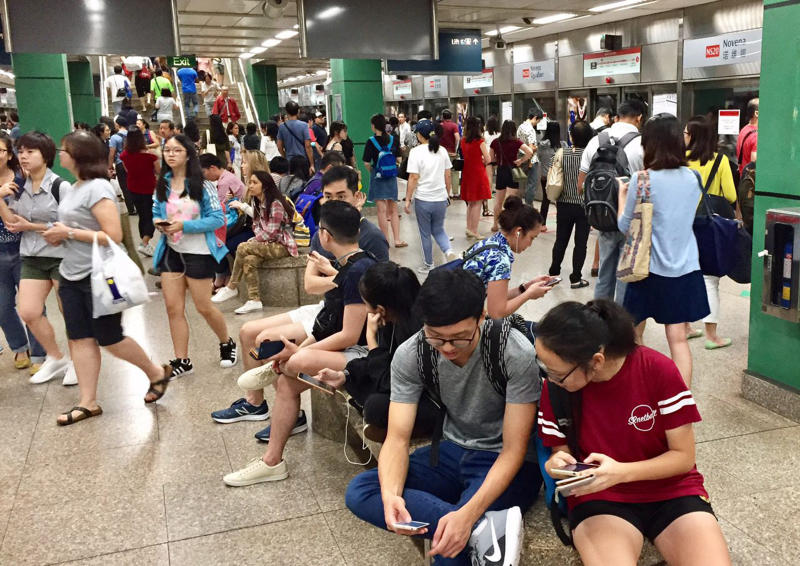 Commuters waiting at Novena MRT station at 6.20pm on Oct 7, 2017, following a train disruption.
