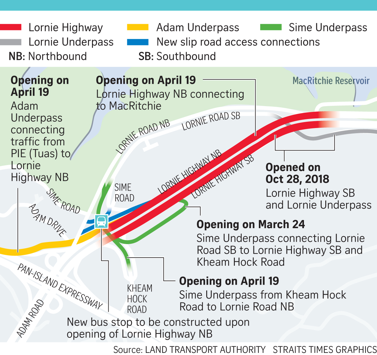 A new Sime underpass will open from 3am on Sunday, to connect motorists from the southbound Lornie Road to the southbound Lornie Highway and Kheam Hock Road.