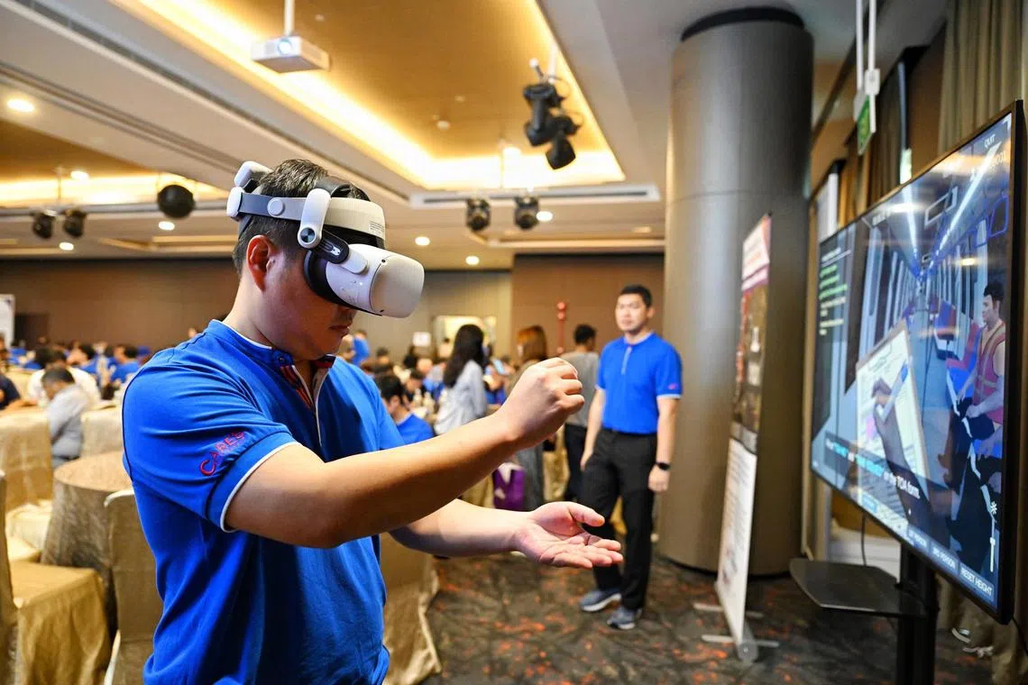 Mr Chua, 51, said training is a lot more effective with the VR trainer, as users can familiarise themselves with different tasks and review their performance in each session via a results log. This is presented as a video playthrough from a third-person perspective, allowing users to study the mistakes they have made.