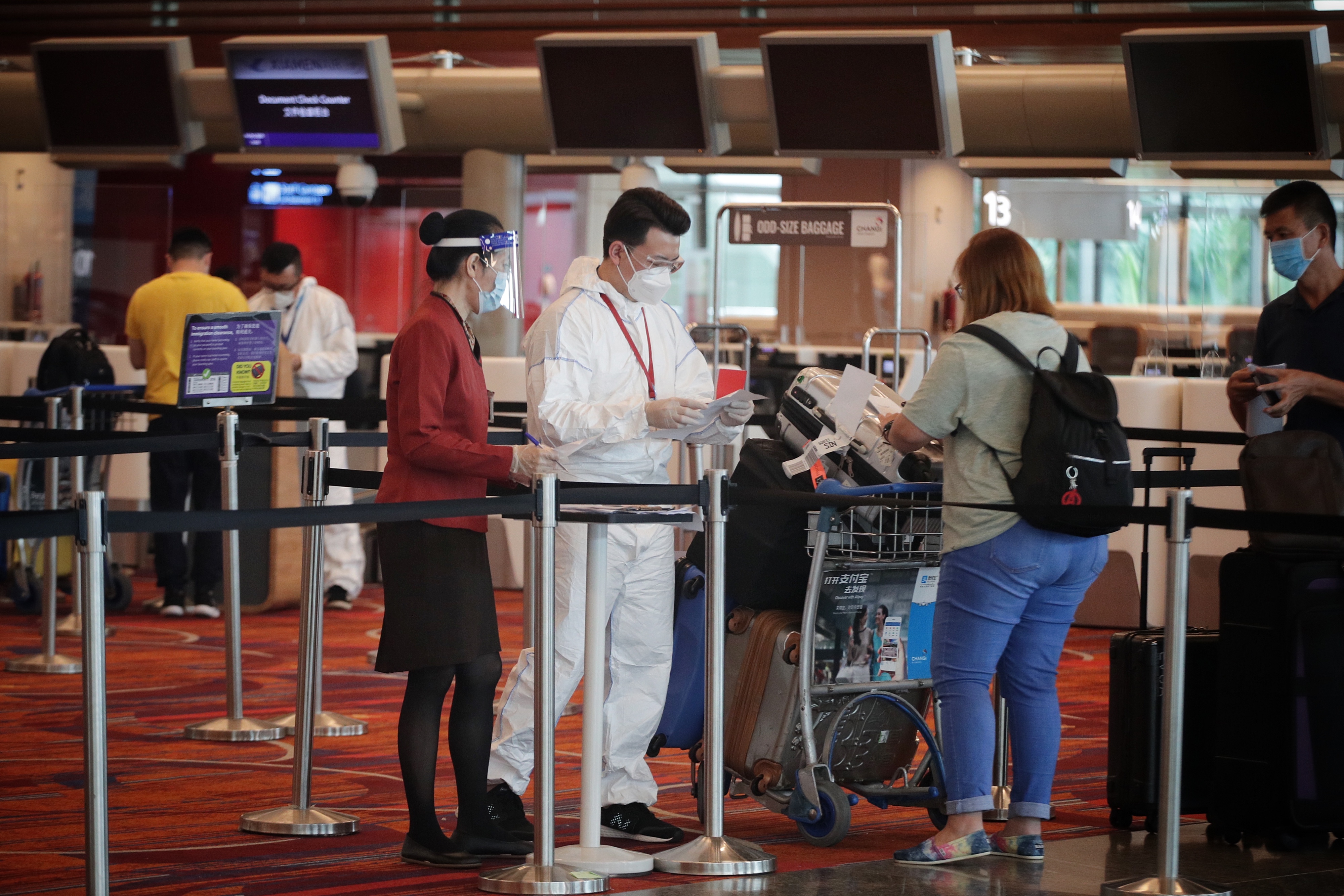 SINGAPORE - Staff at Changi Airport who come into close contact with passengers - such as swab assistants - will have to don full personal protective equipment (PPE) at work and be tested for Covid-19 every two weeks.