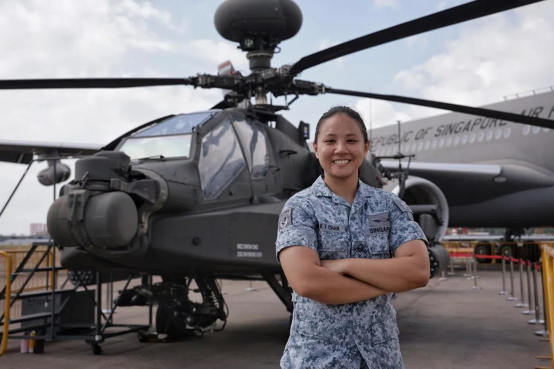 Military Expert 4 Katherine Chan works together with her team to ensure the AH-64D Apache helicopter is safely deployed between Changi Air Base and Changi Exhibition Centre.