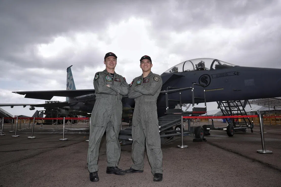 F-15SG weapon systems officer, Major Lee Si Wei, and F-15SG aerial display team lead, Major Paul-Matthew Lim, are both involved in executing the manoeuvres for the fighter jet at the Singapore Airshow 2024.