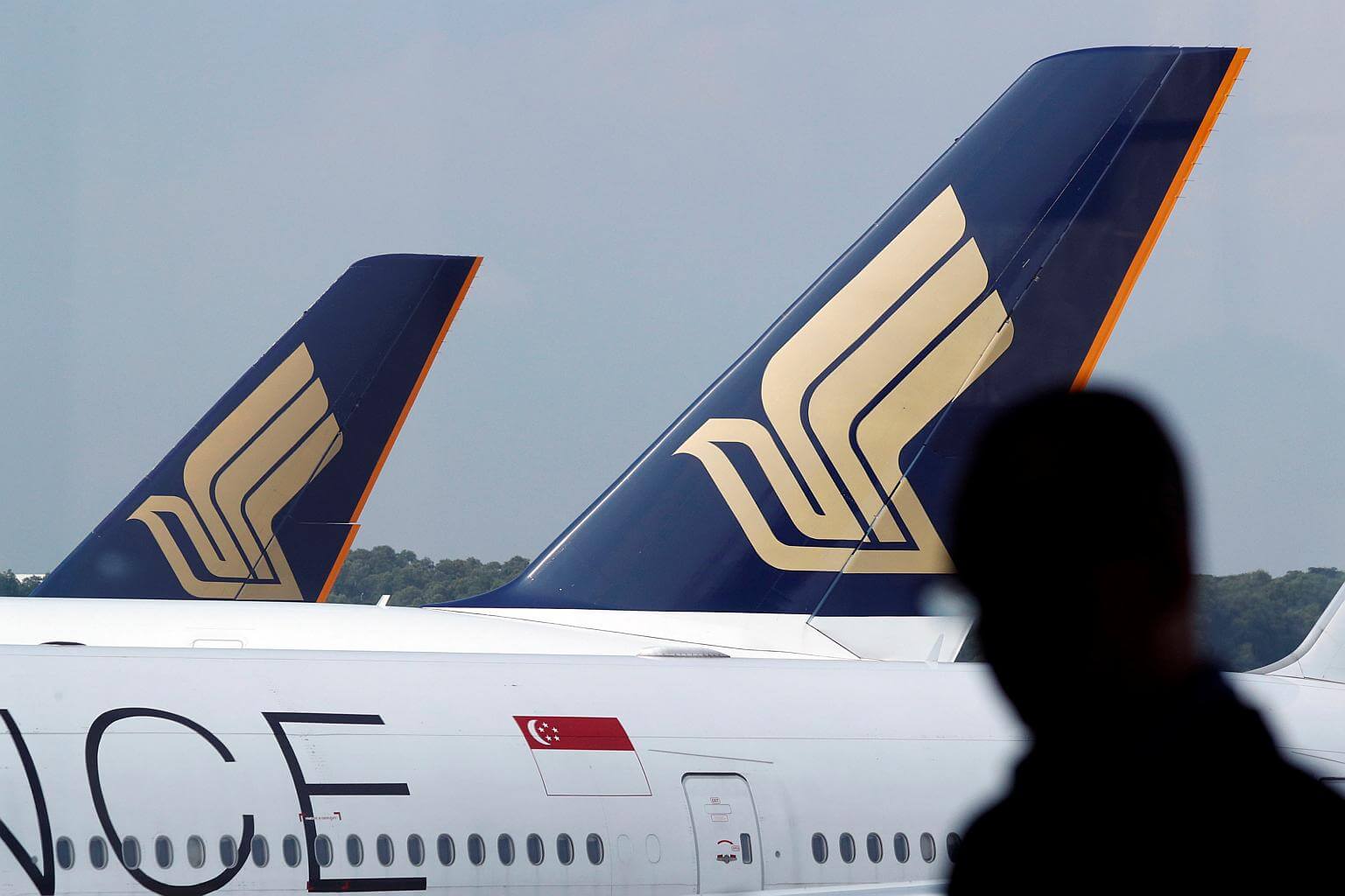 Singapore Airline aircraft on the tarmac of Changi Airport.