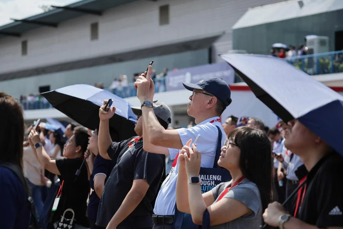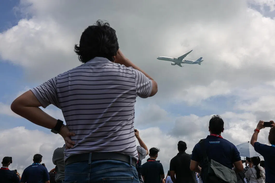 Visitors watching the manoeuvres by the flying display teams from various countries during the Singapore Airshow 2026 on Feb 5.