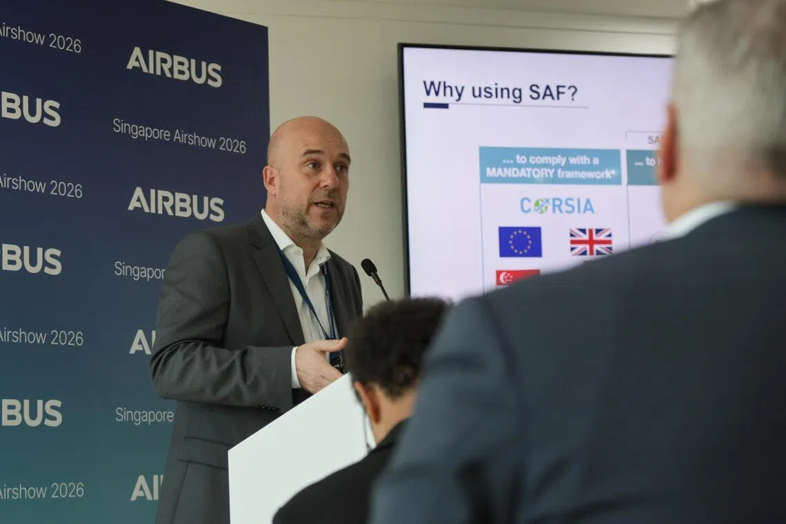 Despite sufficient production capacity, demand remains limited, said Mr Julien Manhes, head of sustainable aviation fuel and carbon dioxide removals at Airbus. With SAF costing three to four times more than conventional jet fuel, adoption has been slow.