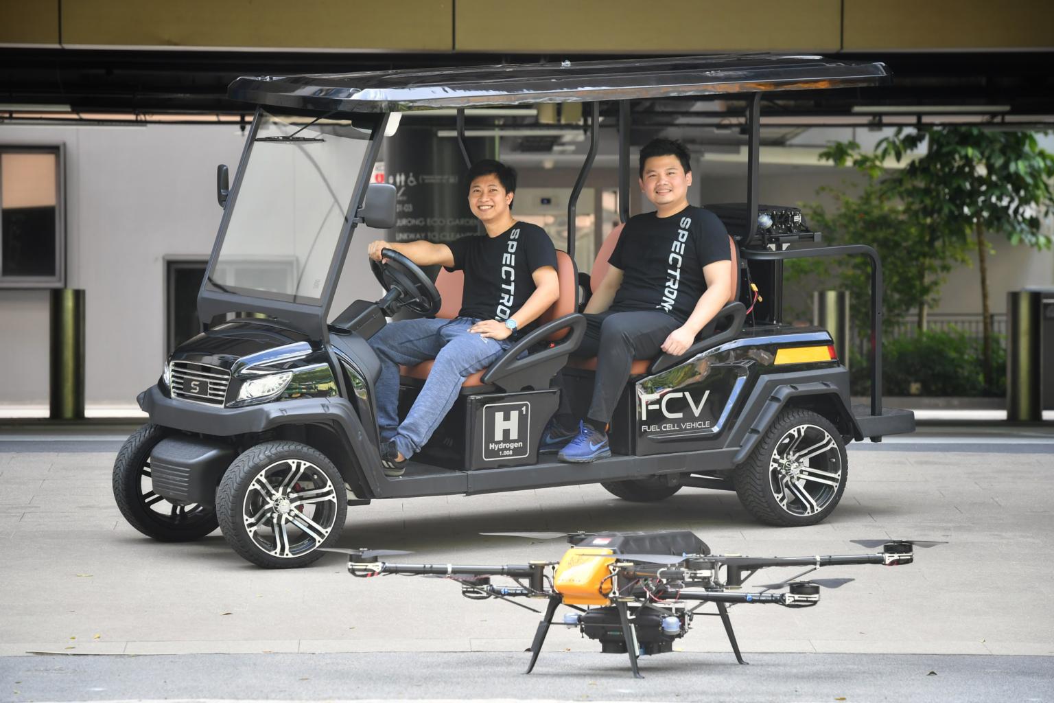 Co- founders of Spectronik, Zarli Maung Maung (left) and Jogjaman Jap with the hydrogen FC-powered golf cart and drone.