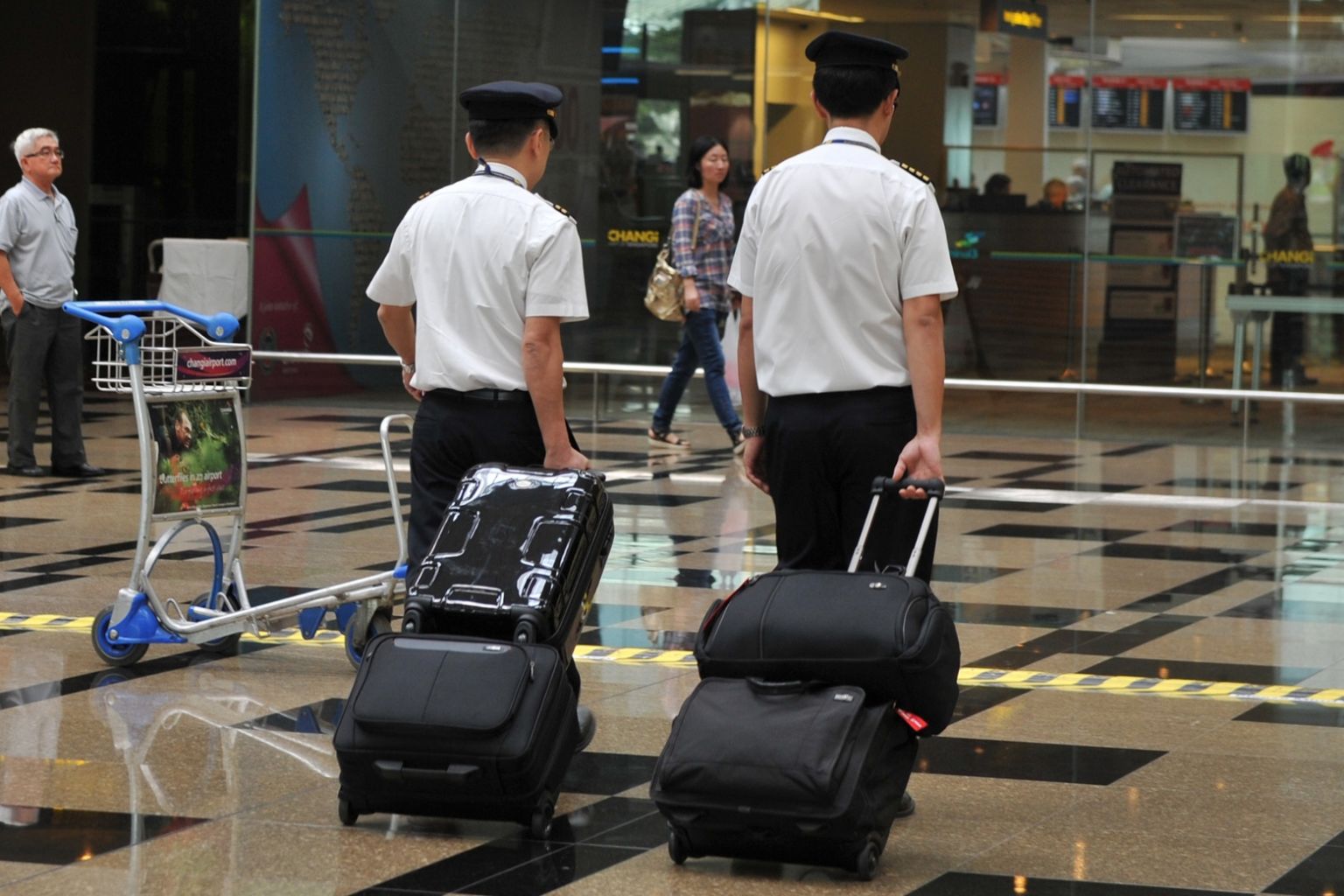 Pilots at Changi Airport. CAAS said that random alcohol testing for pilots will be done discreetly and away from the public eye.
