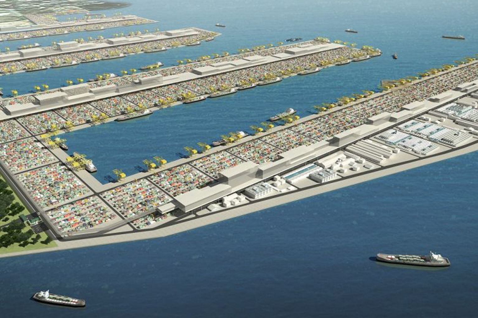 An artist’s impression of the Tuas mega port which will open progressively from 2021.