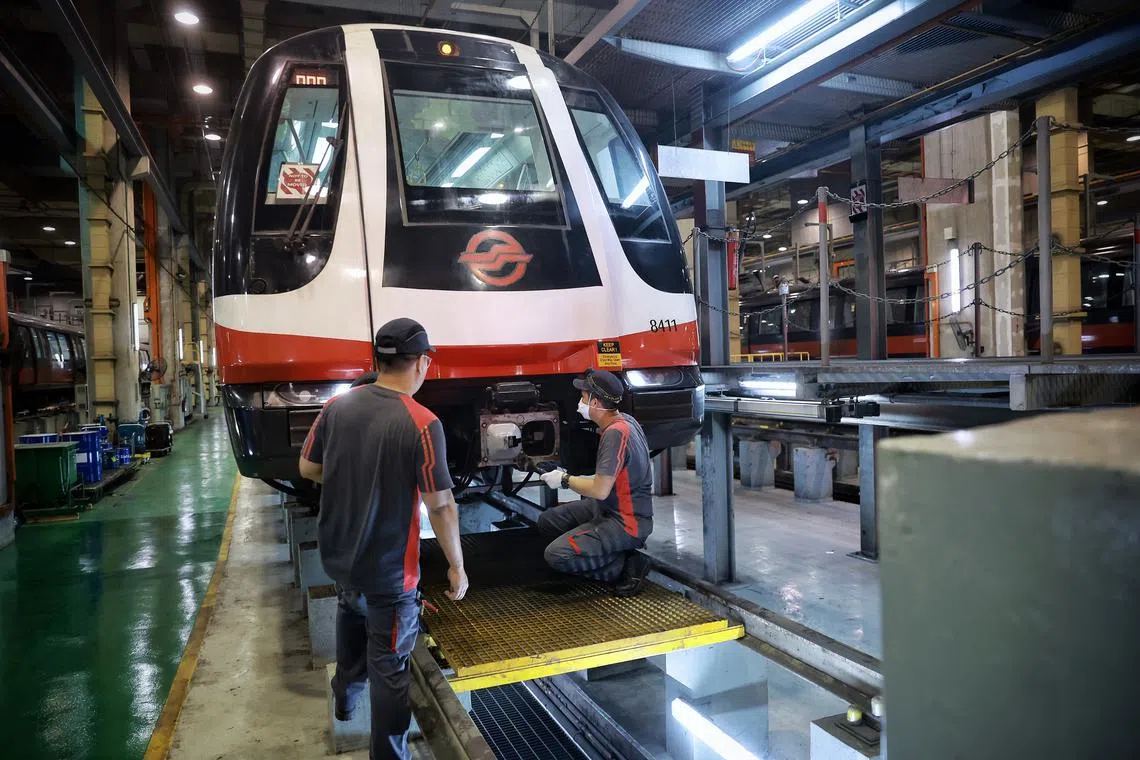Maintenance work being carried out by engineers at Kim Chuan Depot.