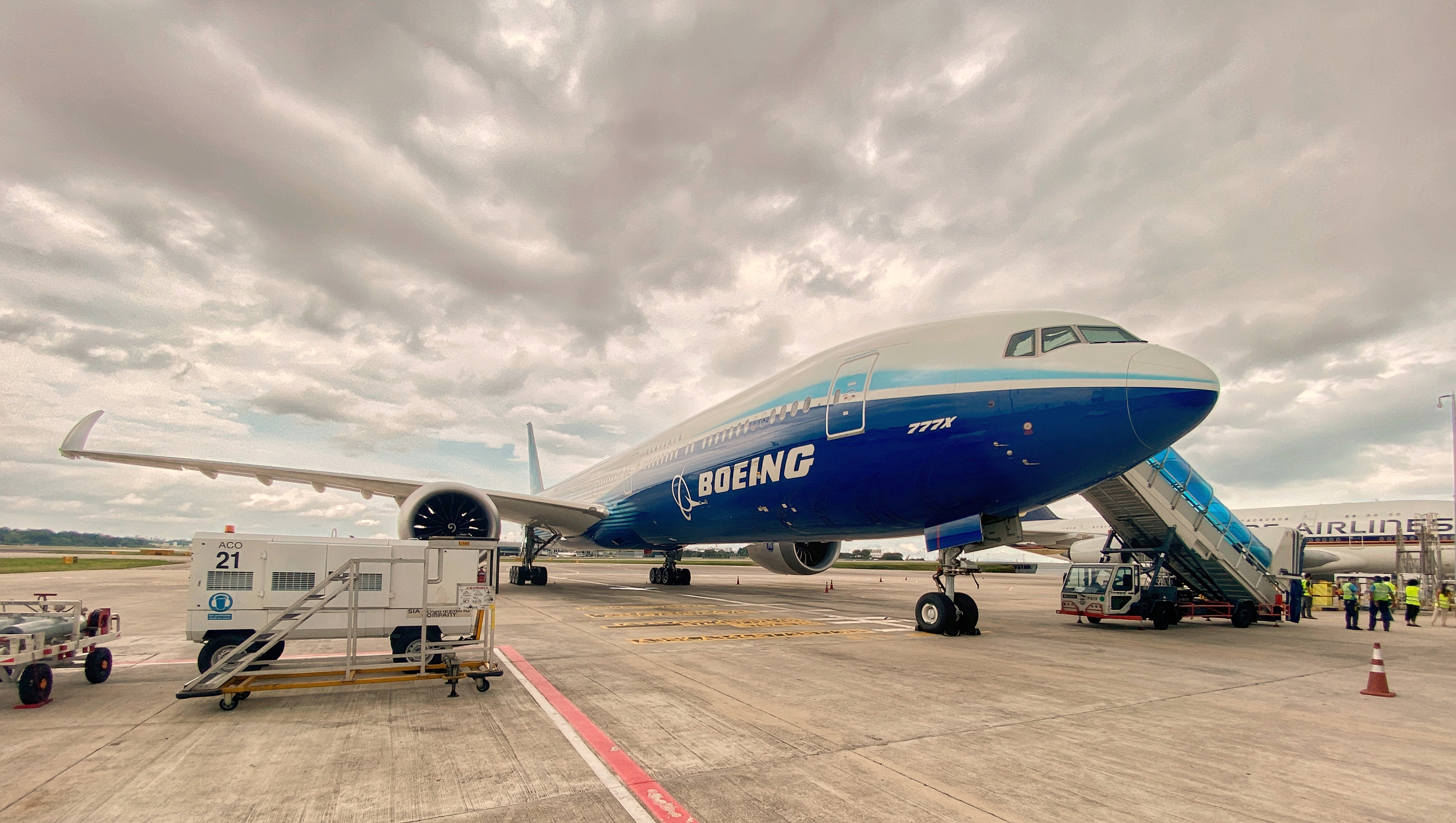 The new Boeing 777X plane being readied on Feb 13 for its Asian debut at the Singapore Airshow.