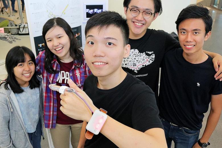 The prototype, made by a team of five, was one of 87 projects featured yesterday at SUTD's The Technological Body exhibition, which involved first-year engineering and architecture students teaming up to make design technology to be worn.