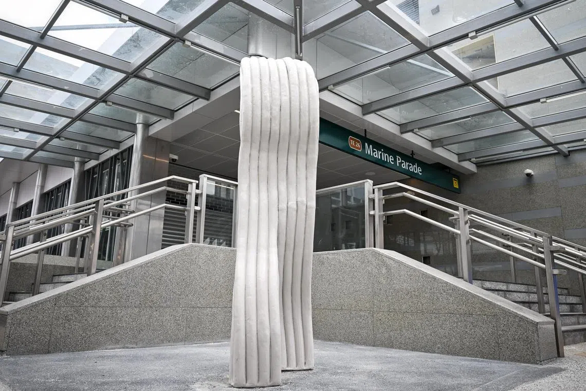 The artwork Time After Time, by artists Sit Weng San and Tania De Rozario, at Katong Park station.