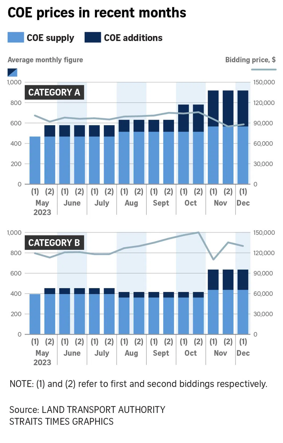 After reaching highs of $150,001 (Category B) and $158,004 (Open), premiums fell across all categories at the first tender in November