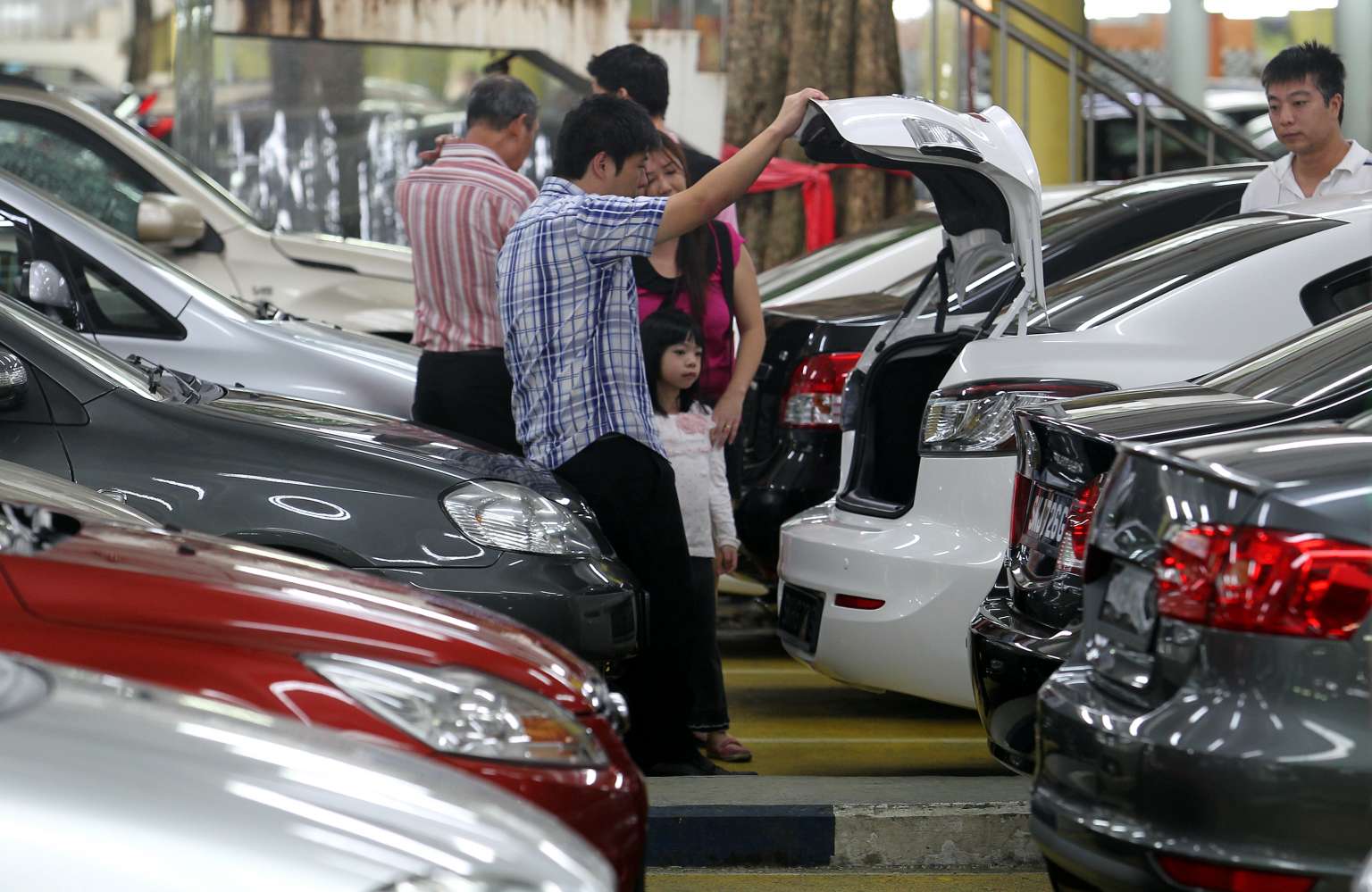 Customers at a used car showroom at Turf City on April 6, 2013.