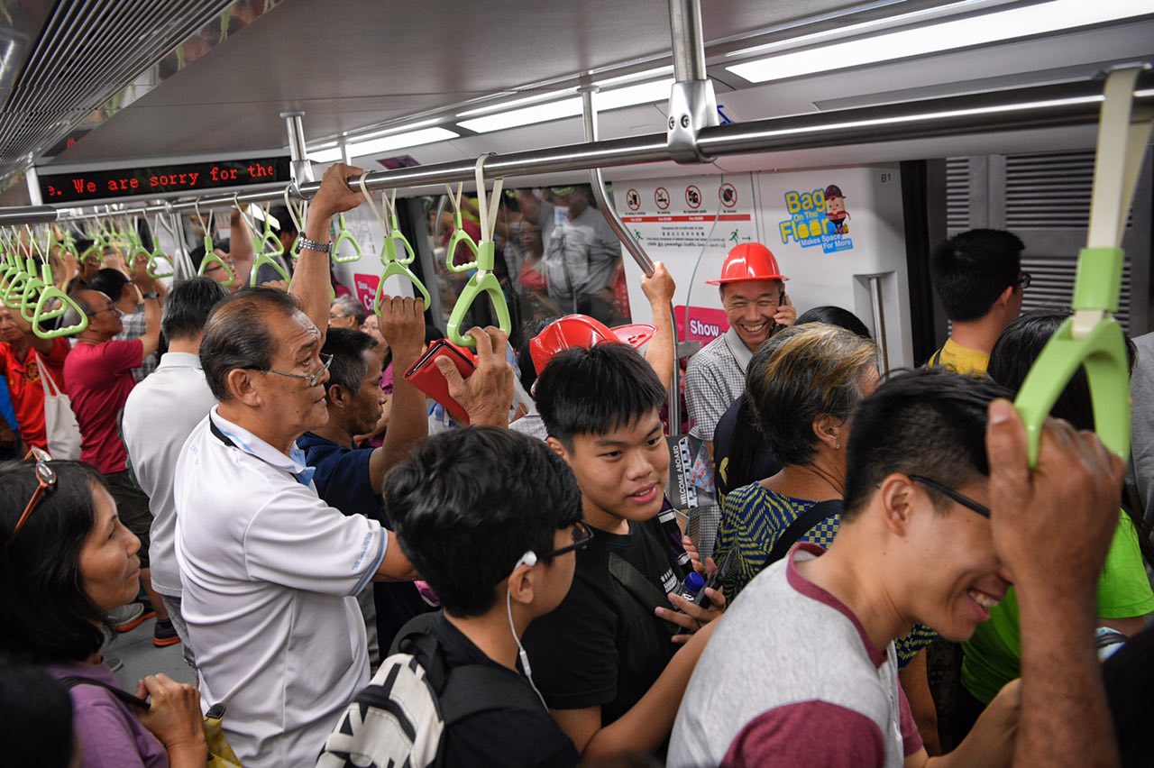 Commuters waiting for the train to resume at Ubi station towards Bukit Panjang station along the Downtown Line.
