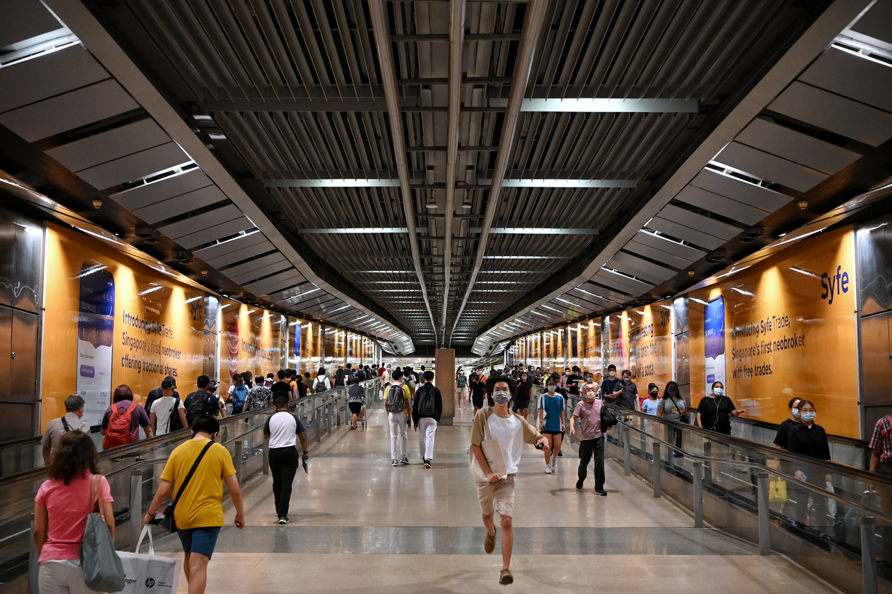 A photo from Feb 15, 2022, shows commuters at Serangoon MRT station.