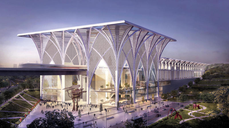 Artist's impression of the Bangi-Putrajaya station for the Kuala Lumpur-Singapore High Speed Rail.