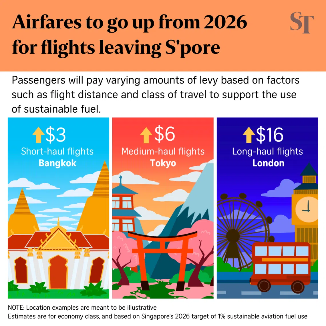 SINGAPORE – From 2026, travellers flying out of Singapore will pay higher airfares because of a levy the Government will impose as part of a move to require flights departing from the city-state to use environmentally sustainable jet fuel.