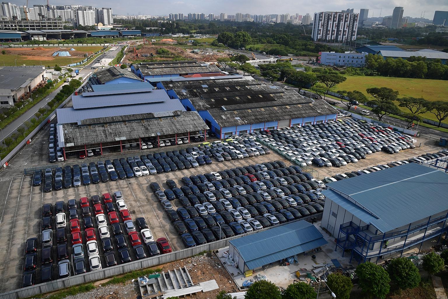 Checks by The Straits Times revealed a massive industrial yard in Jurong housing an estimated 1,000 cars - the single largest collection of unused private-hire cars to date.