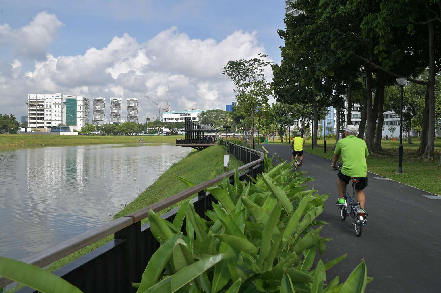 People cycling along the Kallang River.