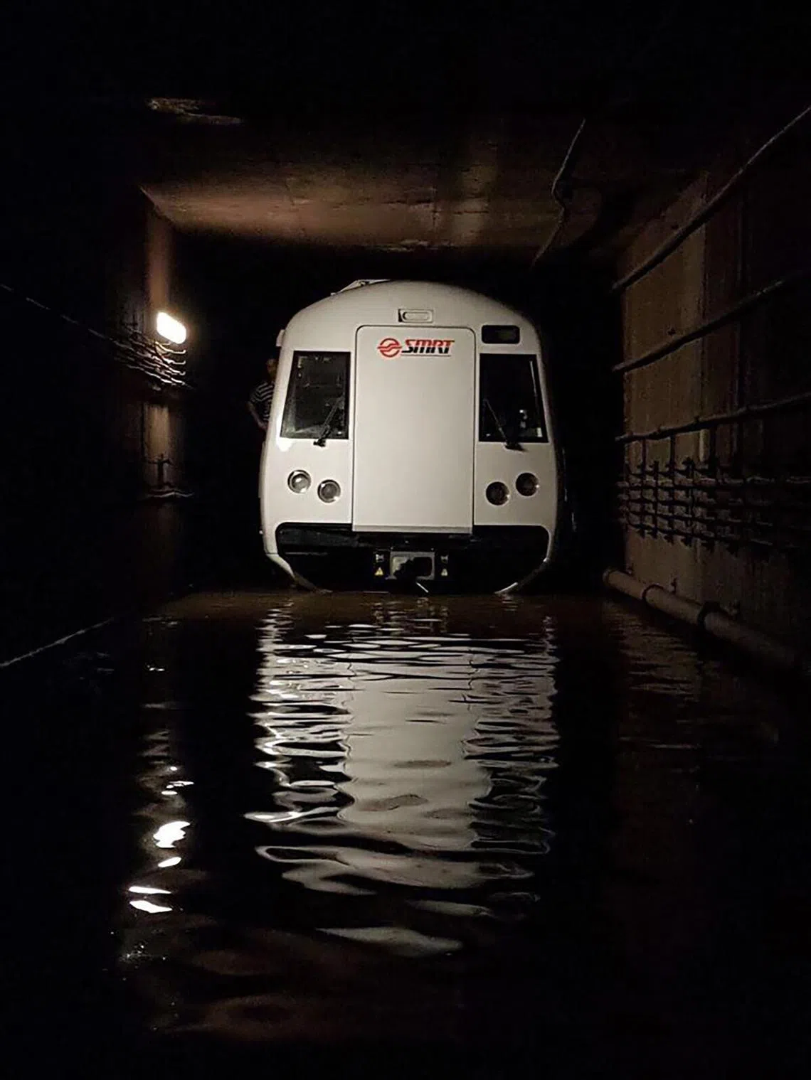 A stalled train in the flooded tunnel between Bishan and Braddell MRT stations on Oct 7, 2017.