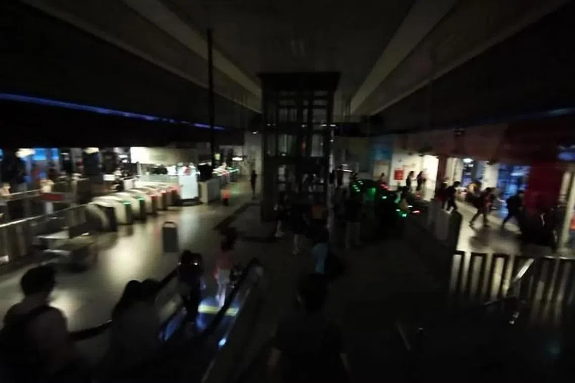 Boon Lay MRT station in partial darkness during a service disruption on Oct 14, 2020.