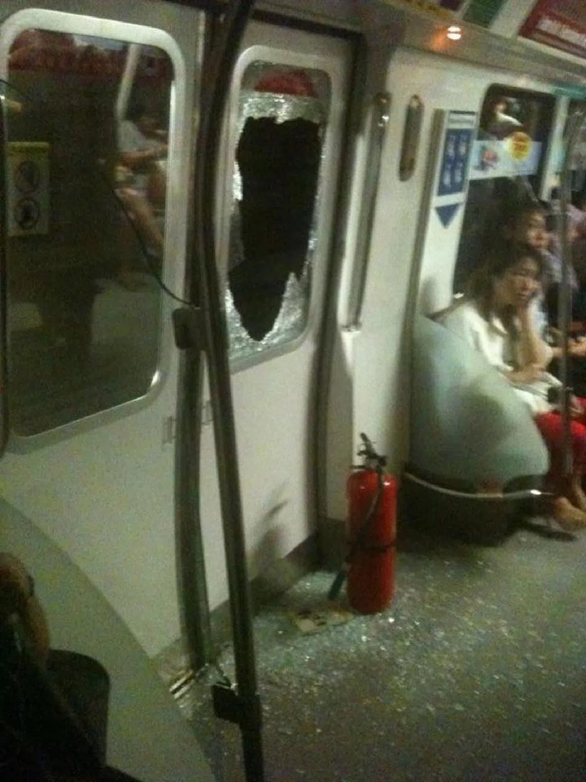 Train windows were smashed to let in air after trains on the North-South Line suddenly lost power and came to a halt during the evening rush hour on Dec 15, 2011.