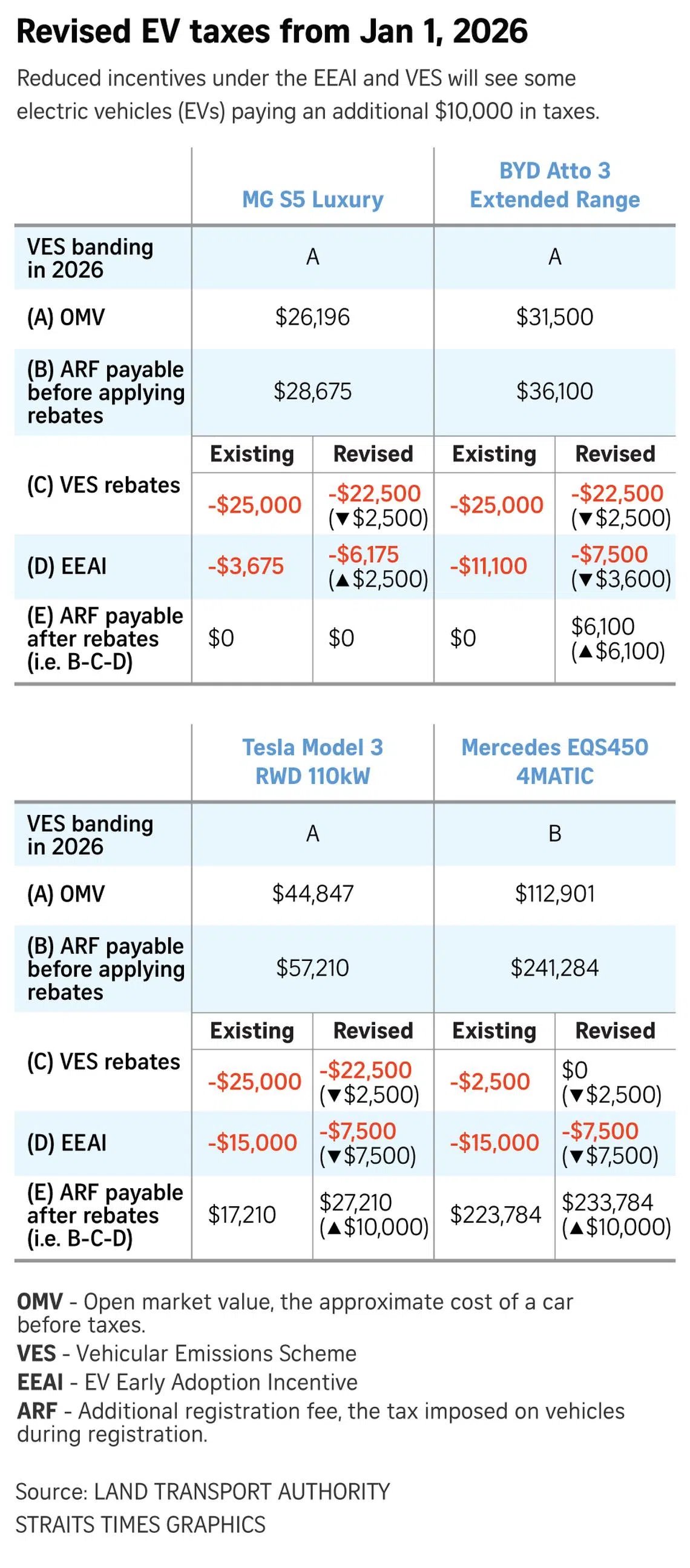 This follows revisions to the EV Early Adoption Incentive (EEAI) and the Vehicular Emissions Scheme (VES) that apply from Jan 1.